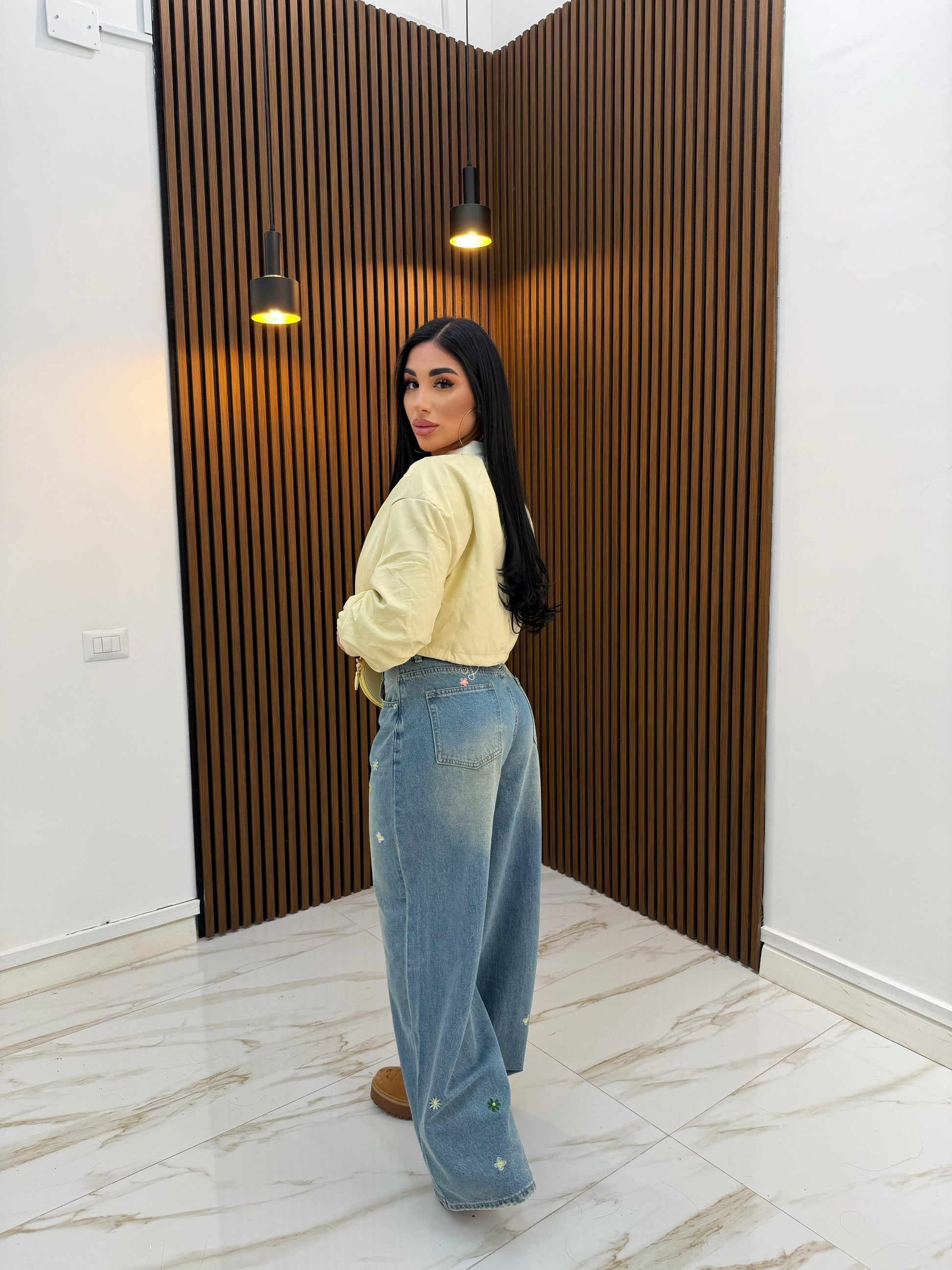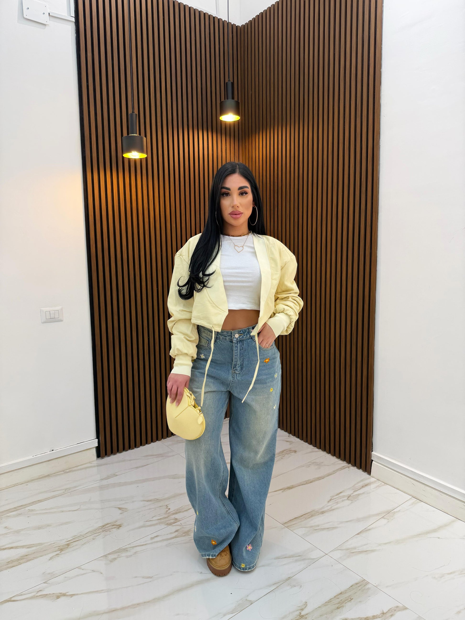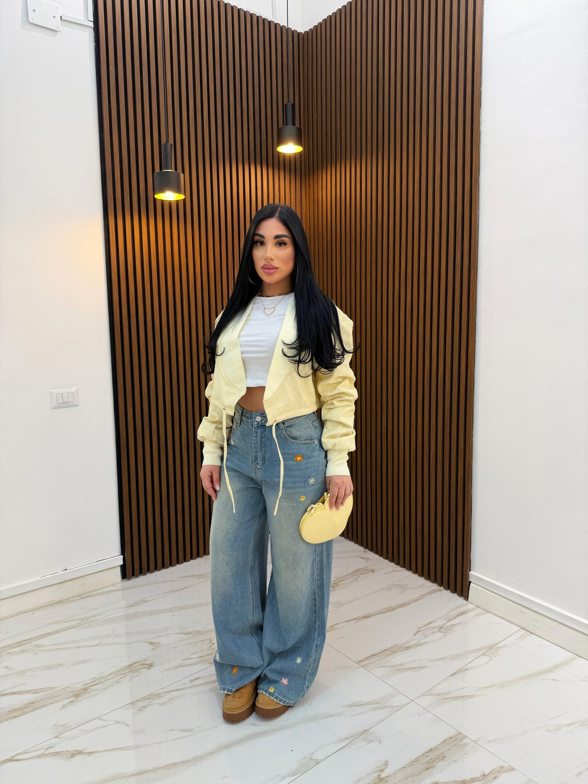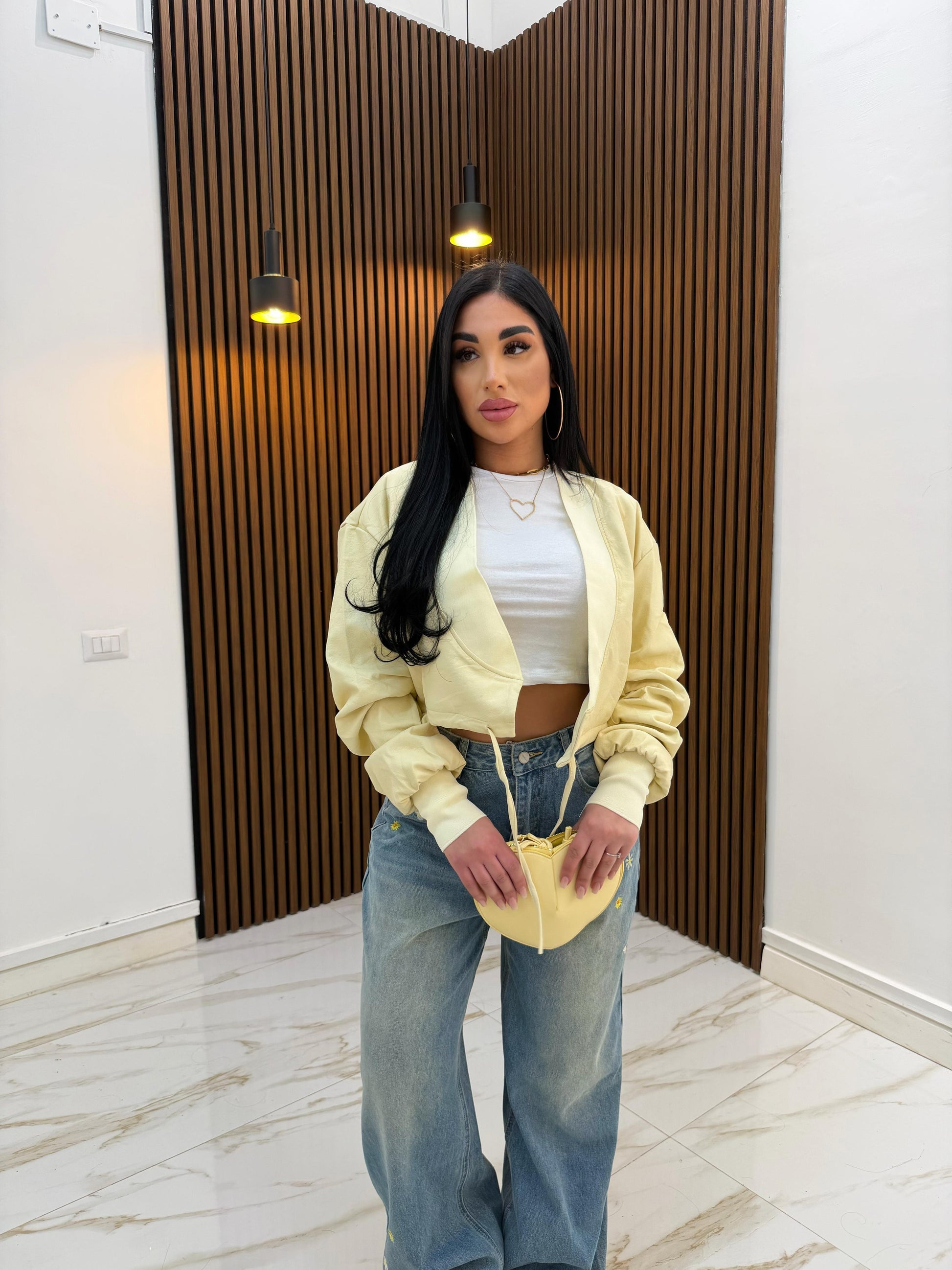 GIACCA CROP ECOPELLE GIALLA
