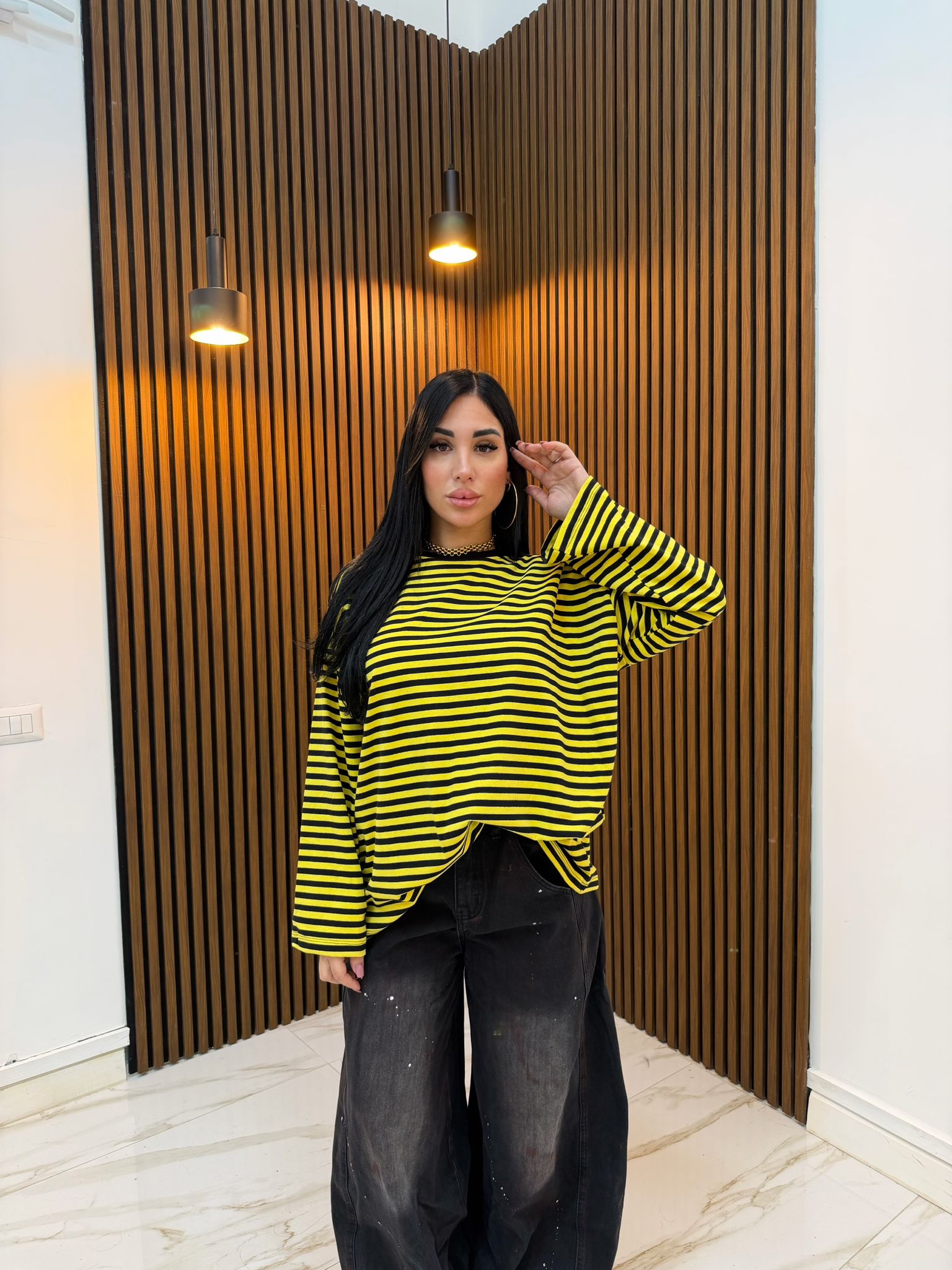 MAGLIA A RIGHE NERO E GIALLO
