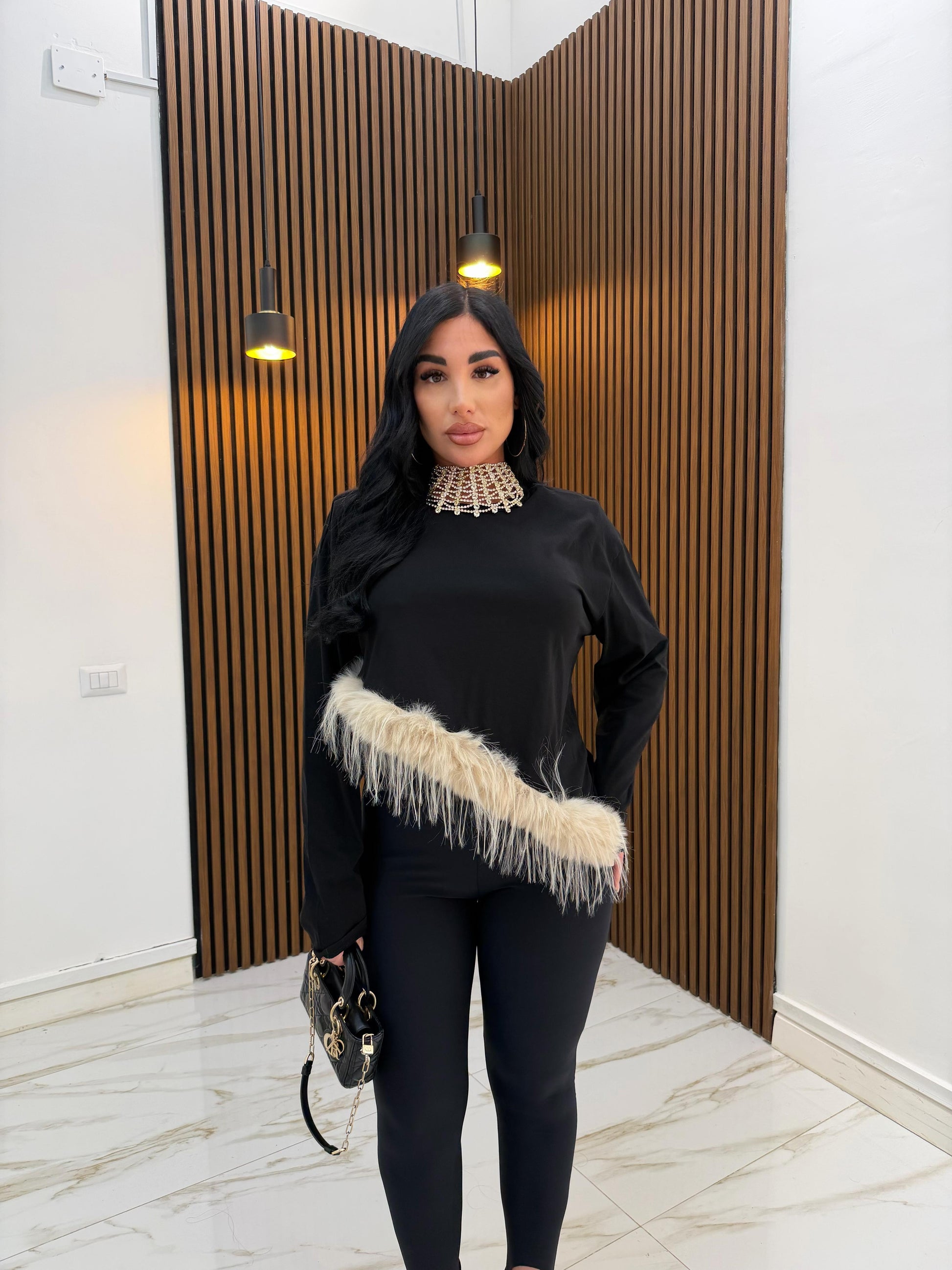 MAGLIA PIUME ASIMMETRICA NERO